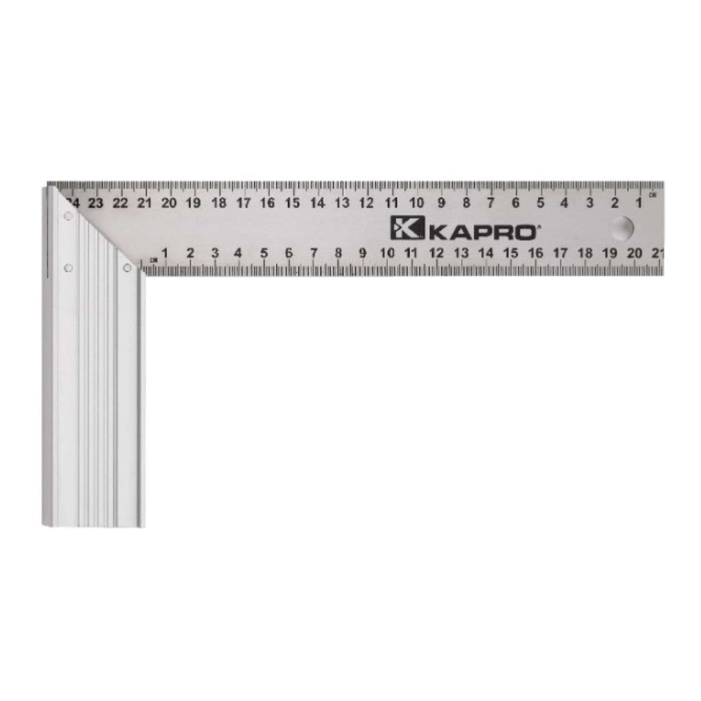Solid riveted construction - Permanently engraved measurement markings - Hardened anti-corrosion stainless steel blade - Certified 90° angle - Machined aluminum handle - Hanging hole.