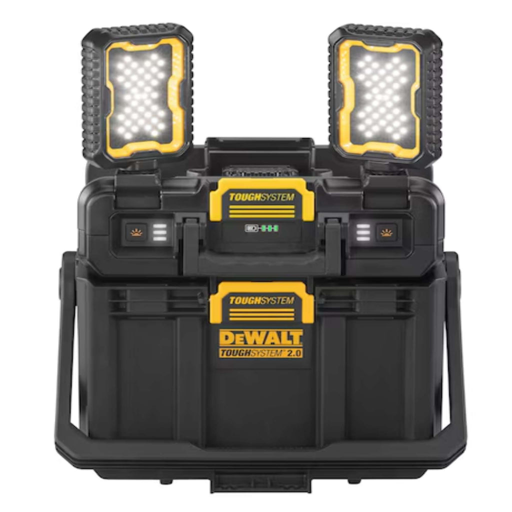 - 2 IN 1 : TOUGHSYSTEM 2.0™ Adjustable work light with two 2-axis rotating panels + TOUGHSYSTEM 2.0™ Stackable Storage-Tote