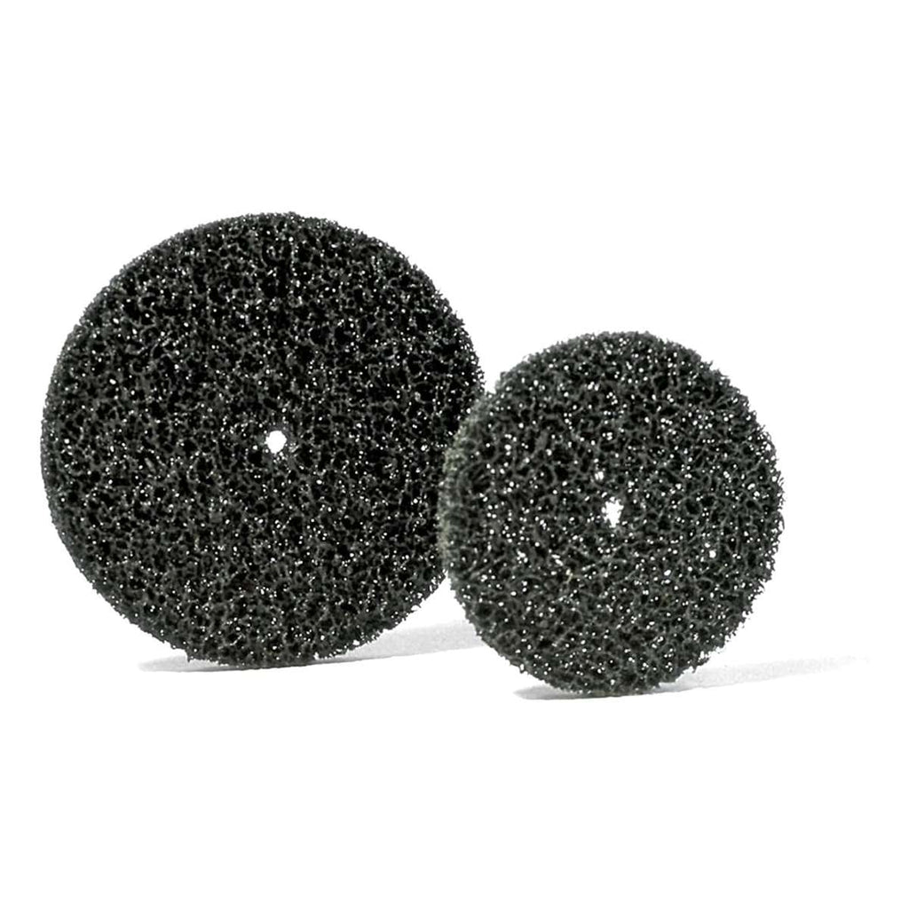 Black Cleaner discs with holes used to clean surfaces, both metallic and non-metallic (stone, plastic, etc.), from coatings of various kinds without damaging them, with a gentle and aggressive abrasive action at the same time.