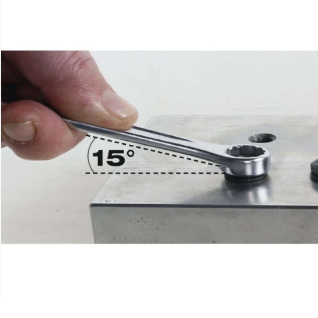 Elegant and slender combination wrench, lightened in lines and lighter to the touch, with head thicknesses reduced to the minimum possible to intervene correctly in any space.