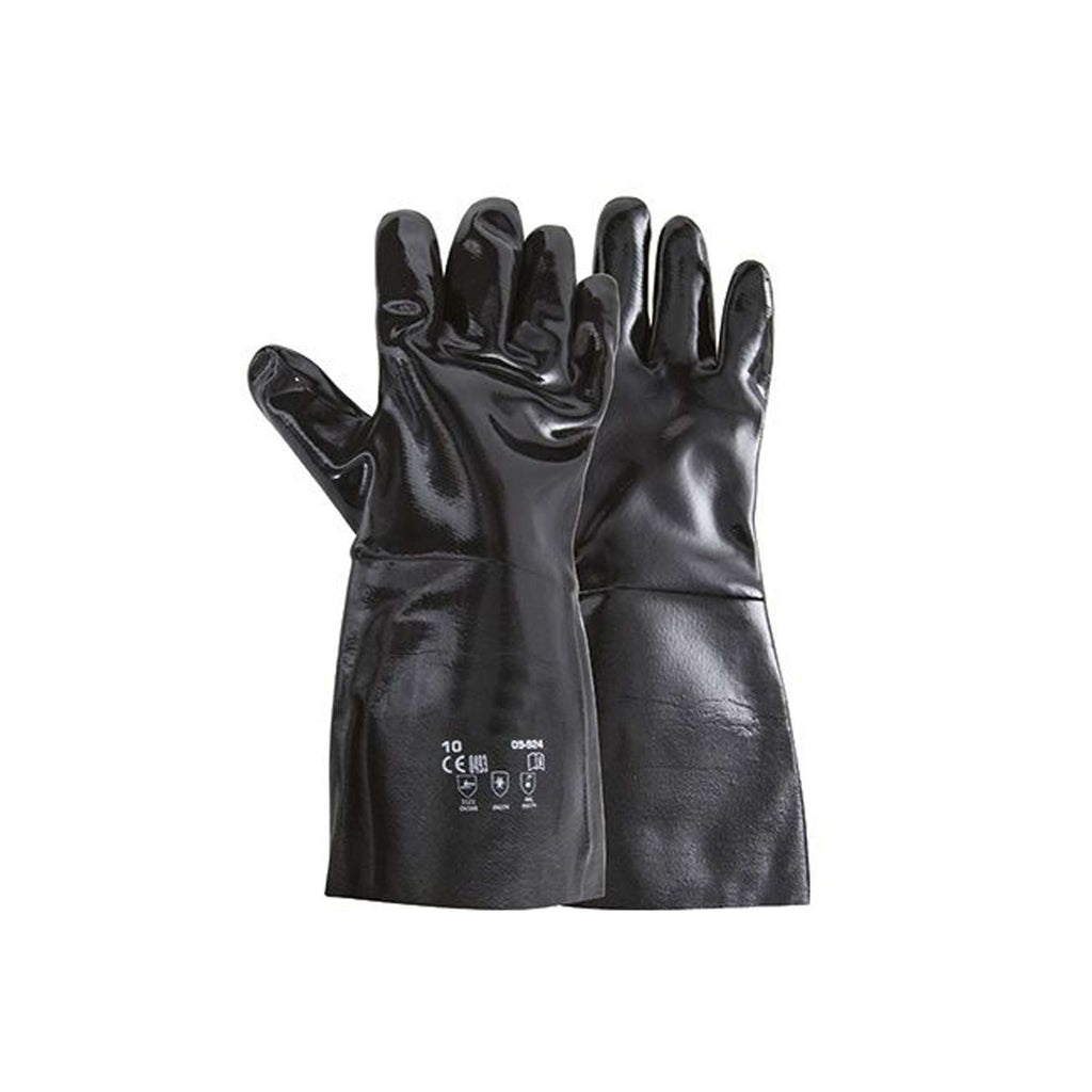 Tipo interamente in neoprene - EN 388 - EN 374 - Secondo CE, Categoria IIIProteggono contro una vasta gamma di olii, prodotti caustici, acidi, alcool e vari solventiAnatomici, per il massimo comfort alle maniEsecuzione con interno floccato in cotone - Di alta qualitàSuperficie esterna liscia e lucidaAdatti anche per la manipolazione di liquidi caldi (fino a max. 180°C) inoperazioni discontinue e lavori in ambienti freddi fino a -25°CLunghezza totale 350 mm