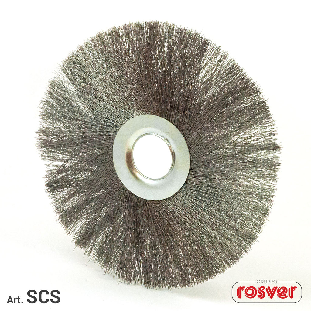 For brushing with stationary machines and bench wheels. Only the tips of the wire must come into contact with the workpiece. Very durable, long life, aggressive work.