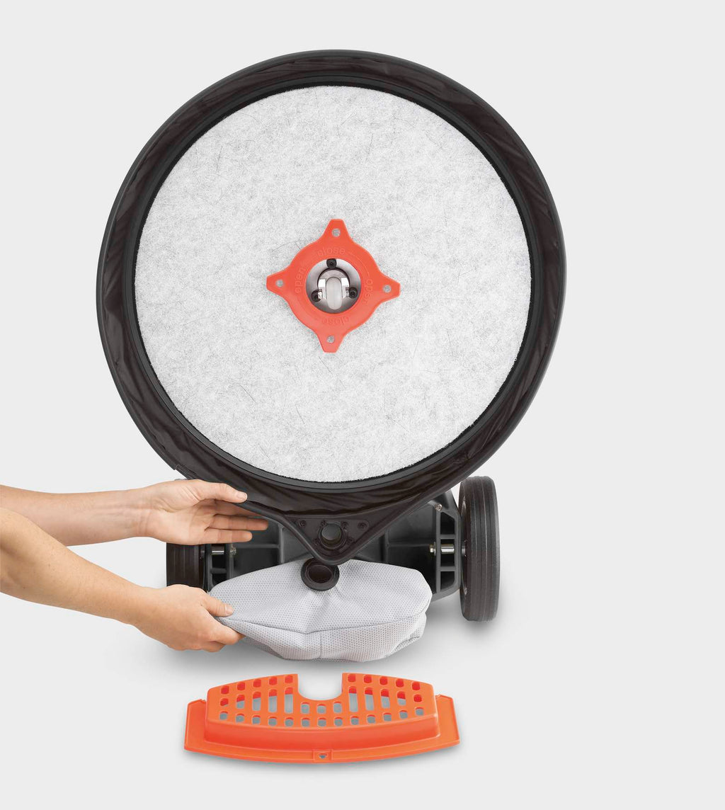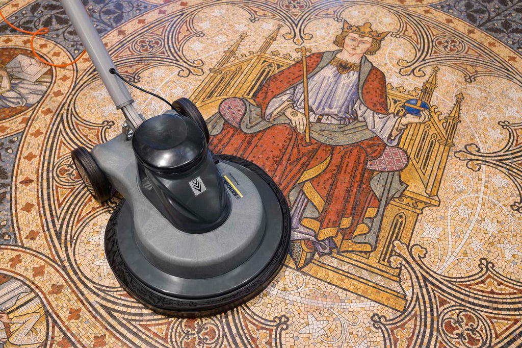 Polisher ideal for polishing wooden floors, limestone, and resilient floor coverings. Suitable for applications in hotels, gyms and cleaning companies. Integrated dust extraction without an additional motor. Floating peripheral skirt to contain the generated dust. Reusable dust collection bag. Central guide wheel for working close to walls. Spring-mounted, floating pad holder adapts to all surfaces with automatically regulated contact pressure. Tool-free pad replacement. High-visibility orange power cable.