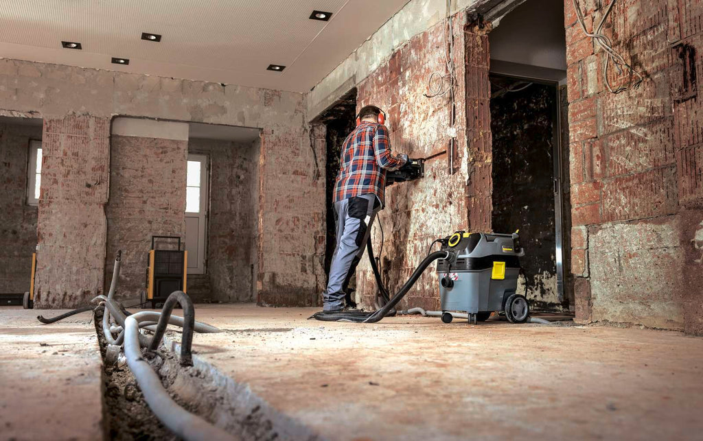 The NT 30/1 Ap Te M wet and dry vacuum cleaner is certified for dust class M. Its electro-conductive accessories make it ideal for safely vacuuming fine dust. The NT 30/1 Ap Te M reliably and safely removes all types of hazardous fine dust generated on construction sites and in workshops. This compact vacuum cleaner with semi-automatic filter cleaning technology is equipped with a moisture-resistant PES “Wet & Dry” flat pleated filter for vacuuming fine dust, liquids and coarse dirt in dust class M, ensuring a filtration efficiency of 99.95%. The integrated power tool socket with automatic start and the complete anti-static system (with conductive accessories) make this vacuum ideal for direct extraction from dust-generating power tools. The machine is extremely easy to use, as the most important settings are controlled via a central rotary switch. Its strong suction performance enables multiple applications: sanding, assembly and installation work, removal of liquids and/or dust from machines and systems.