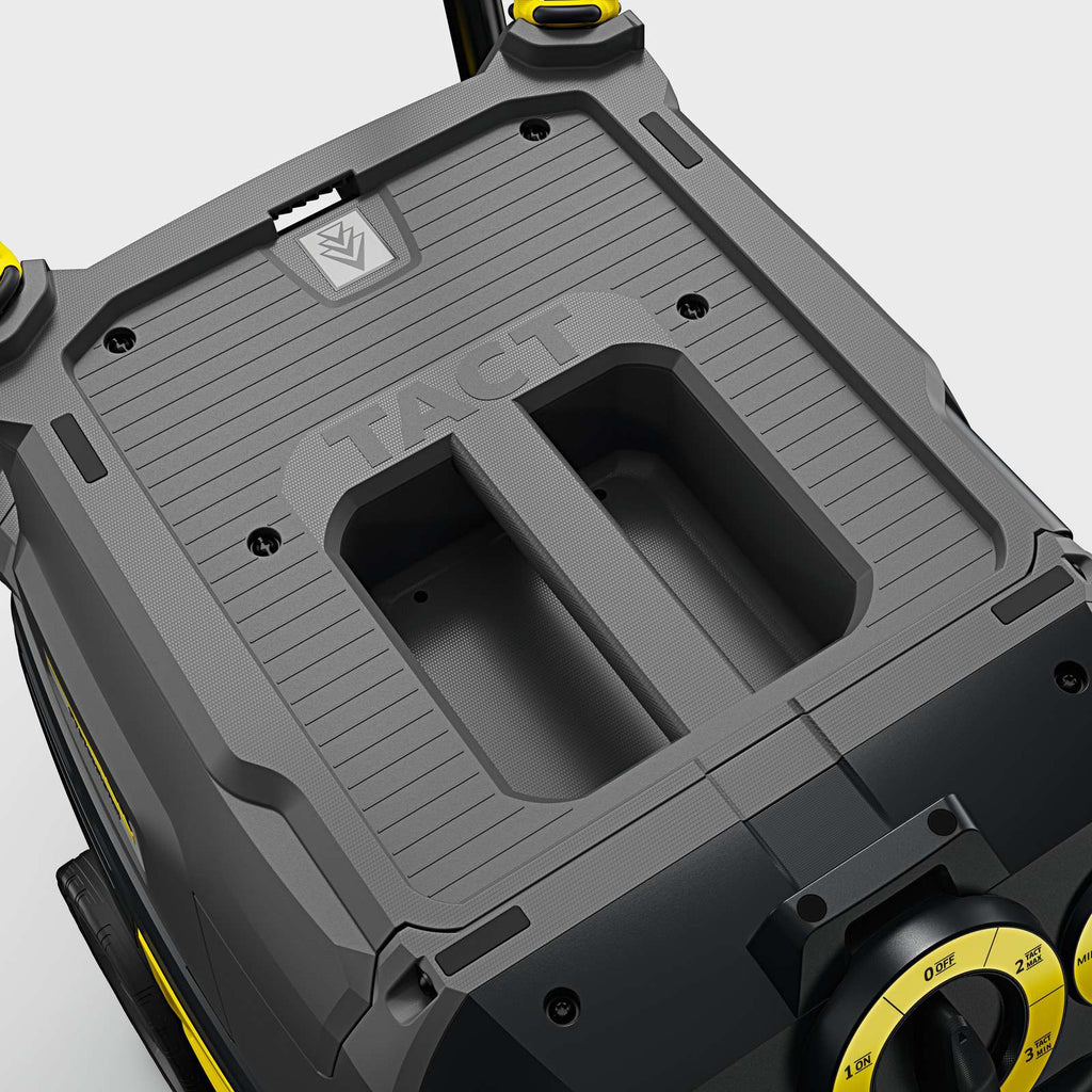 The NT 40/1 Tact TE is a wet and dry vacuum cleaner with a 40-liter collection container, an automatic TACT filter cleaning system with adjustable cleaning intervals, and an integrated power tool socket. The NT 40/1 Tact Kärcher is a highly versatile wet and dry vacuum cleaner suitable for use in various professional environments such as construction sites, workshops, and industrial applications. It is a compact and robust product, equipped with a flat pleated PES filter that retains large quantities of dust and allows the operator to work continuously and in complete safety. The 40-liter collection container can hold both solids and liquids and is extremely robust thanks to the bumper and metal castors. The intuitive rotary main switch is located on the top of the unit. All next-generation accessories can be conveniently stored on the vacuum cleaner. The flat, rubber-coated top provides an ideal surface for placing toolboxes and other work tools, while the integrated power tool socket switches on and off automatically together with the connected power tool.