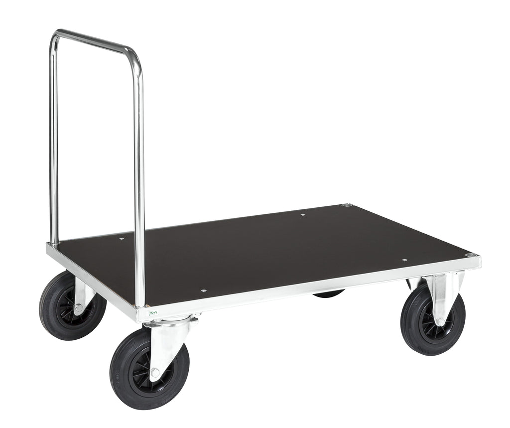 Smart platform truck with a handle available in several models. Serie 500 also offers table trolley, shelf trolley, box trolley, end panel trolley and other variants of the platform trolley.