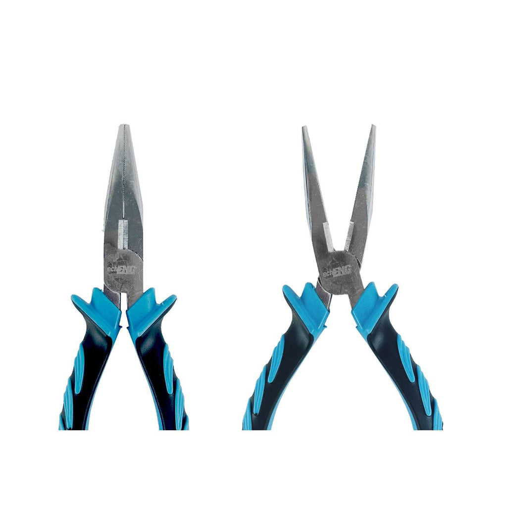 Chrome vanadium steel snipe nose pliers. With non-slip handle.