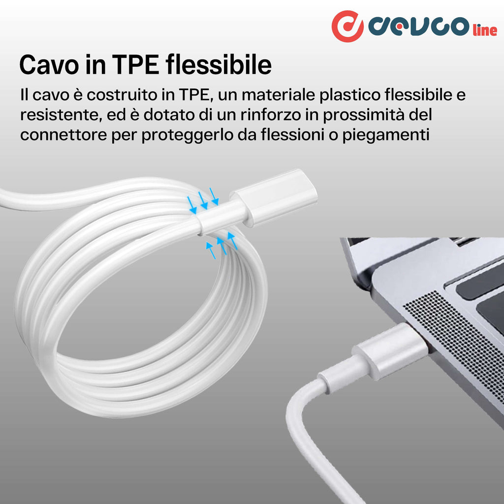 The DEVCOline USB cable is made of TPE, a plastic material that makes the product flexible and ensures its resistance even for a prolonged time of use.